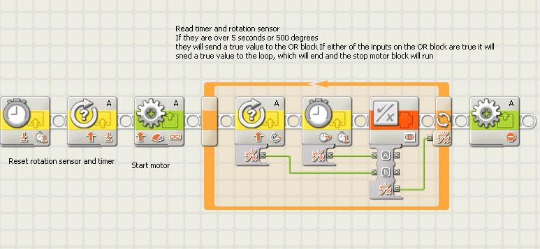 If you mean like eg.. move for 500 degrees or 5 seconds - whichever the shortest -- you could do something like thislargofang wrote:I s it possible to control the time and the degrees that the motor turns in NXT-G? I mean, both at the sametime?