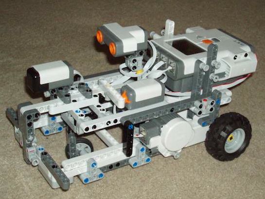 This is one I designed together with Juan Antonio Breña Moral for educational purposes. It has a very light design and has many points on which you can attach sensors. It doesn't require a lot of pieces to make. It has space on the back for a HiTechnic MUX.