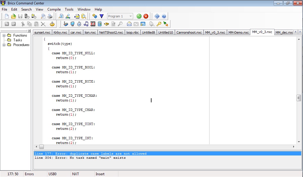 ** Created using BricxCC (by John Hansen) and written in NXC (by John Hansen)