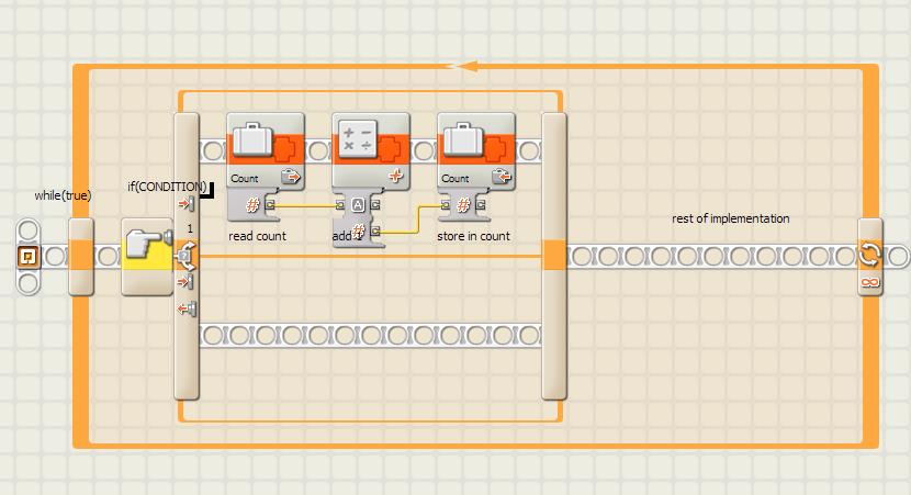 NXT-G. You can create a variable, then in the loop do this: Read it, add it with 1, then write it.